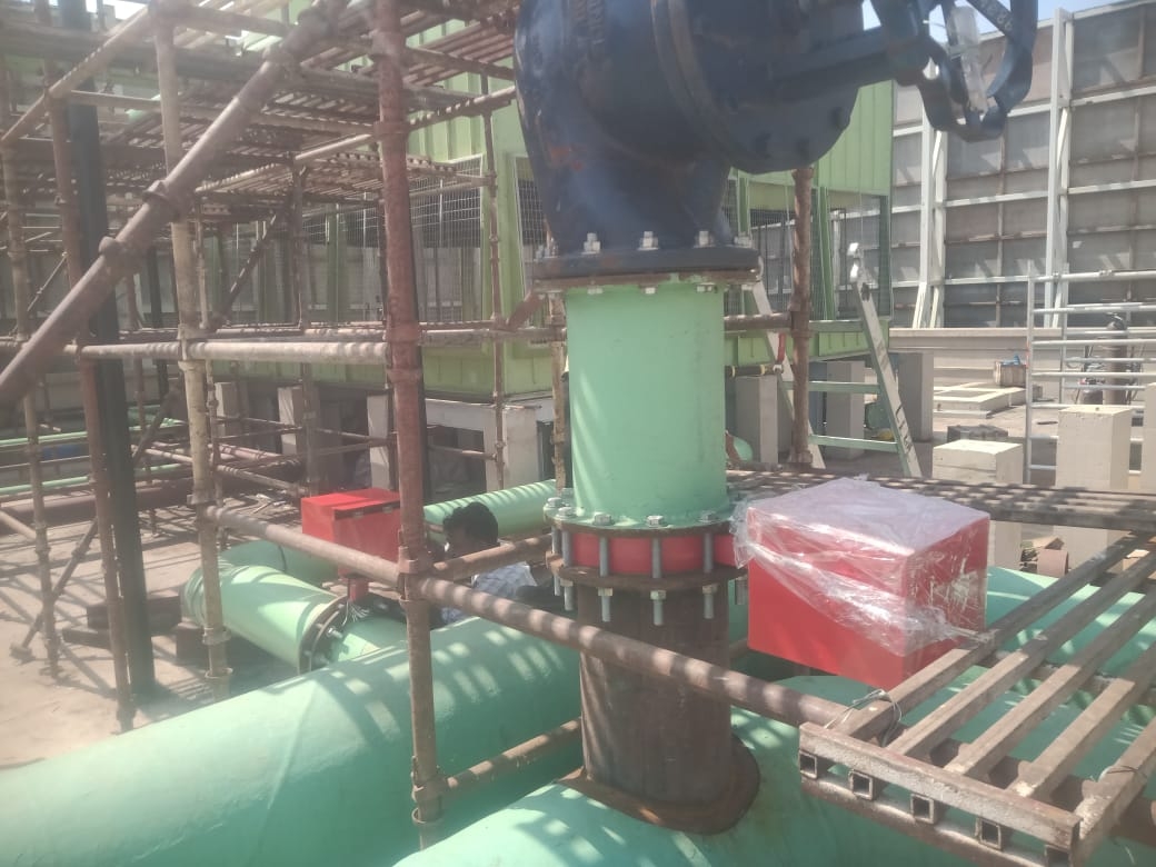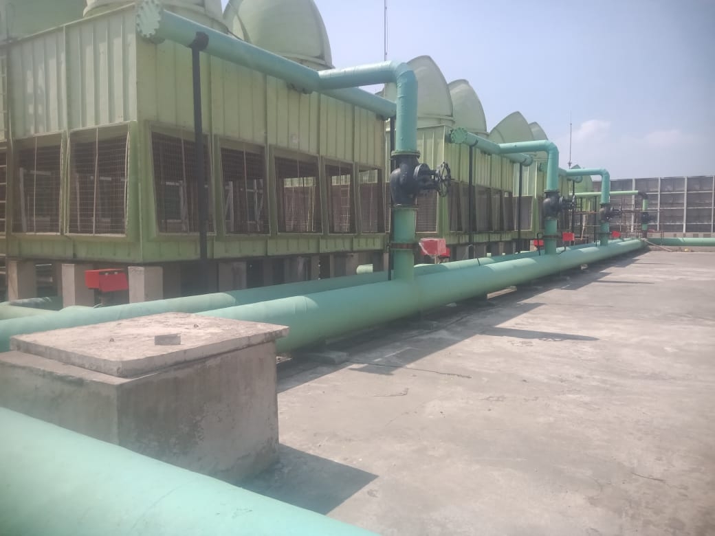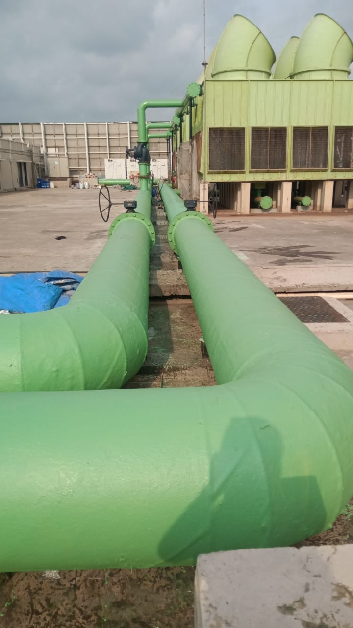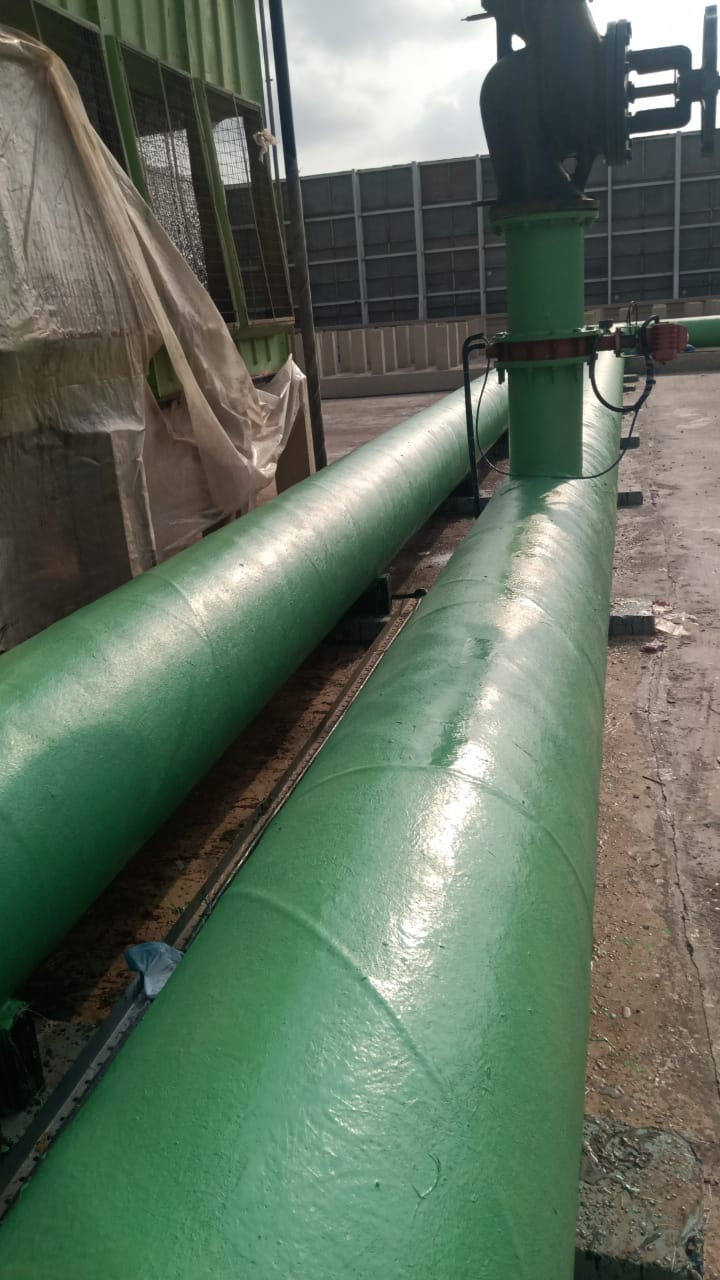 Airport water cooling towers connected with huge pipe lines of 600 dia due to cooling from inside and hot and humid climet from out side condensation forms but with frp coating along with condensation rusting process of pipe line is in control.